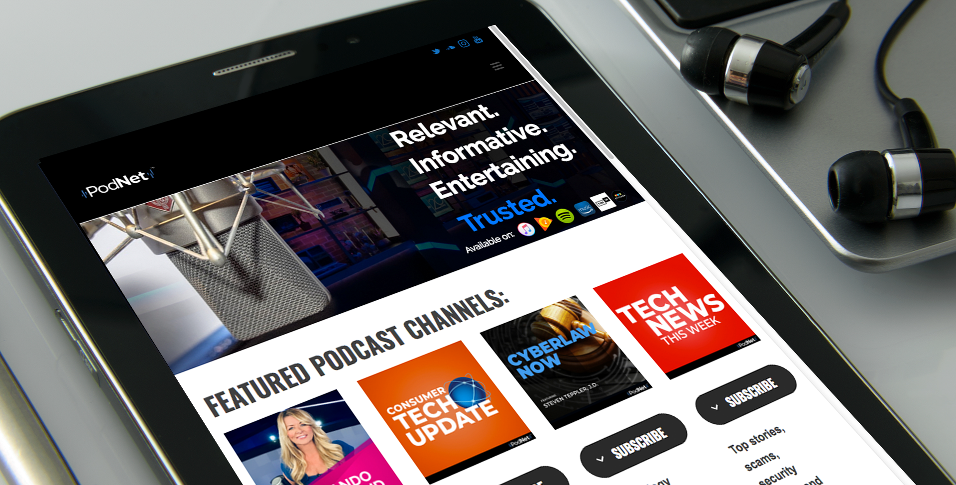 I was the lead designer for Podnet, a podcast network developed for The Kim Komando Show. I created the logo and visual identity, designing a clean, modern look that appealed to a tech-savvy male audience while maintaining continuity with Komando.com. I also worked with the web team, marketing, and another designer on the website design to ensure a cohesive brand presence across all platforms.
